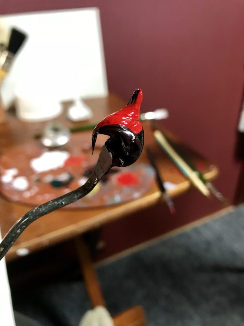 ↑新作となる「カラス」創作中。